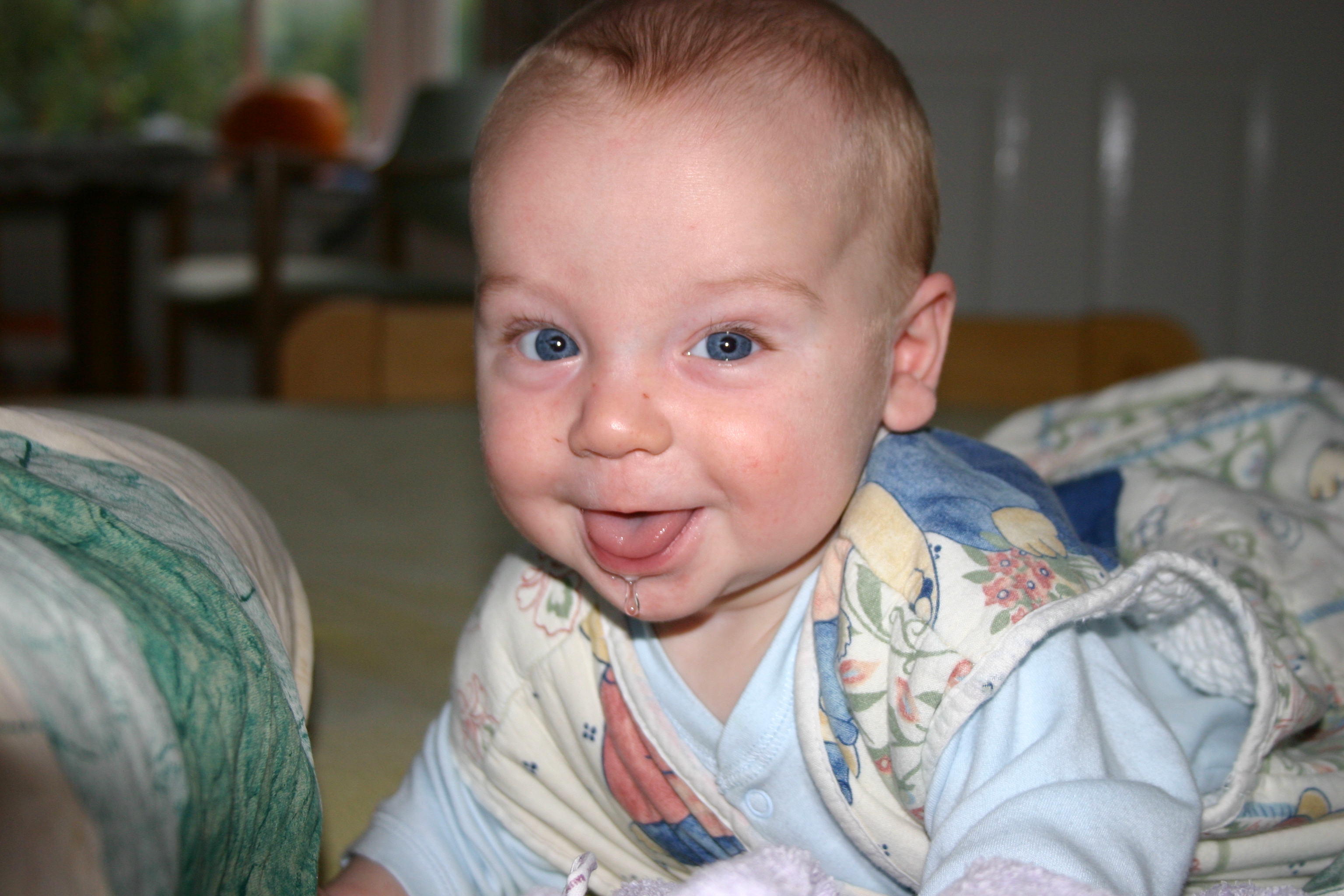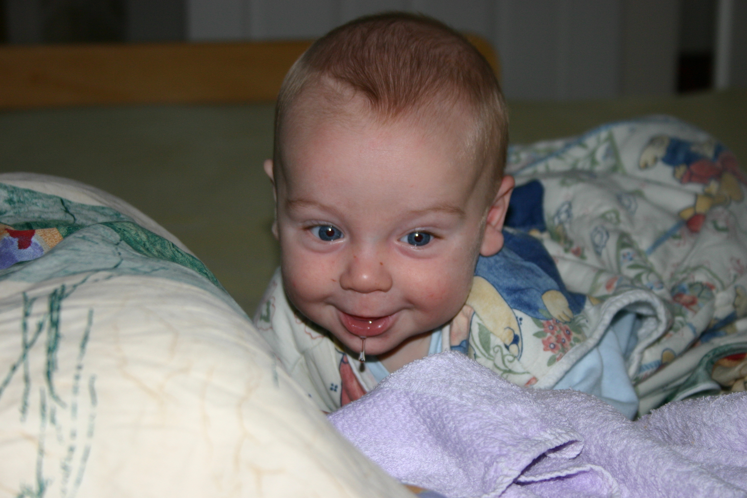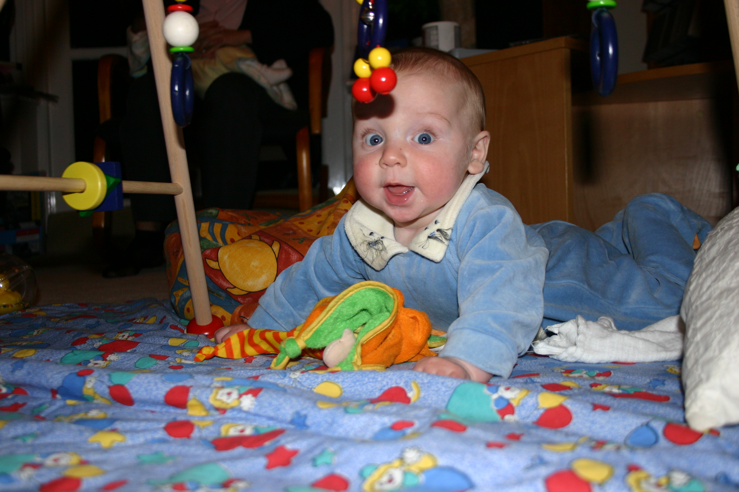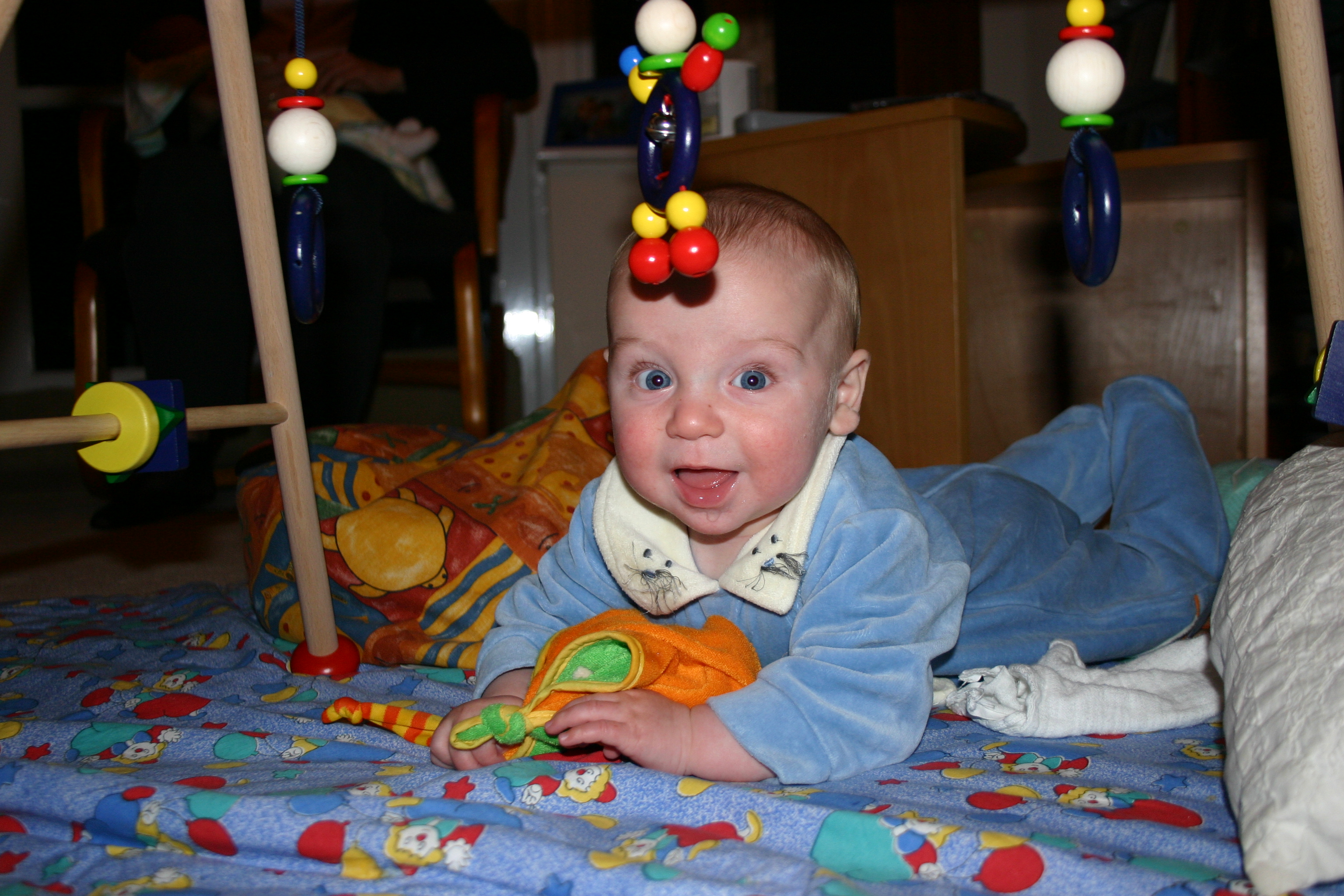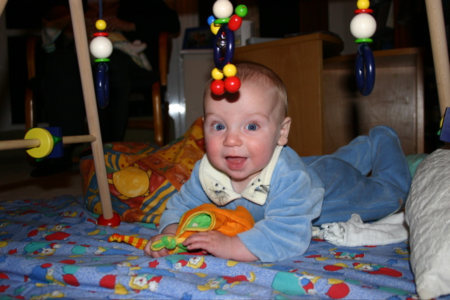 Sehr wohl fühlt sich der junge Mann aber auch einfach ganz alleine auf seiner Krabbeldecke